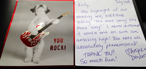 "We just got back from honeymooning in Kauai, and I wanted to spend a few minutes to write you to express my (our) gratitude for you guys rocking the house for our wedding.